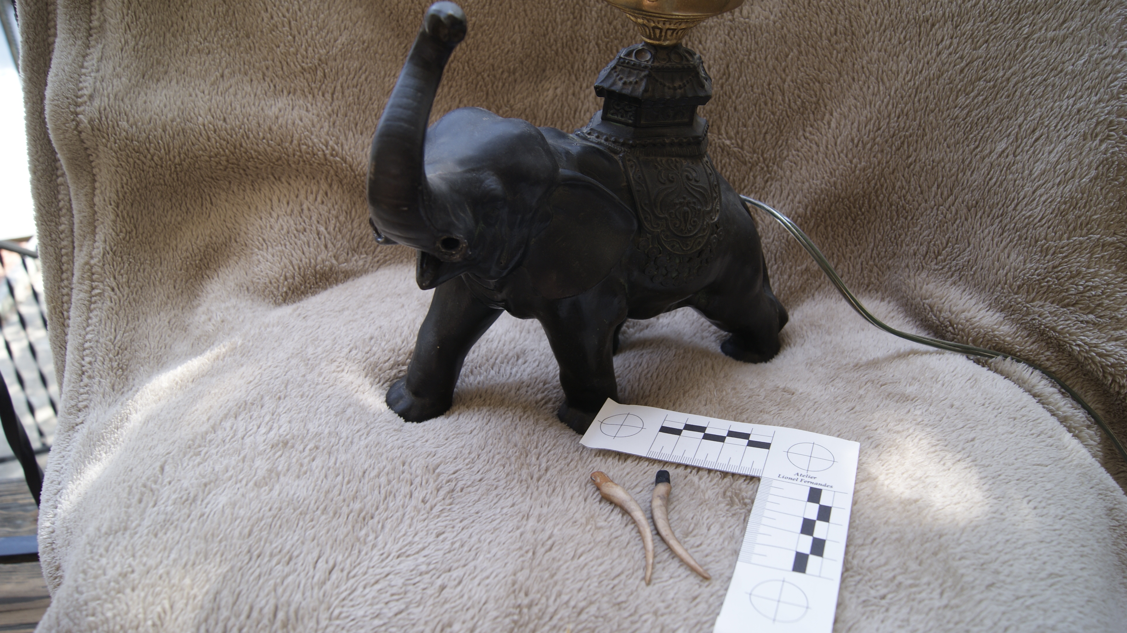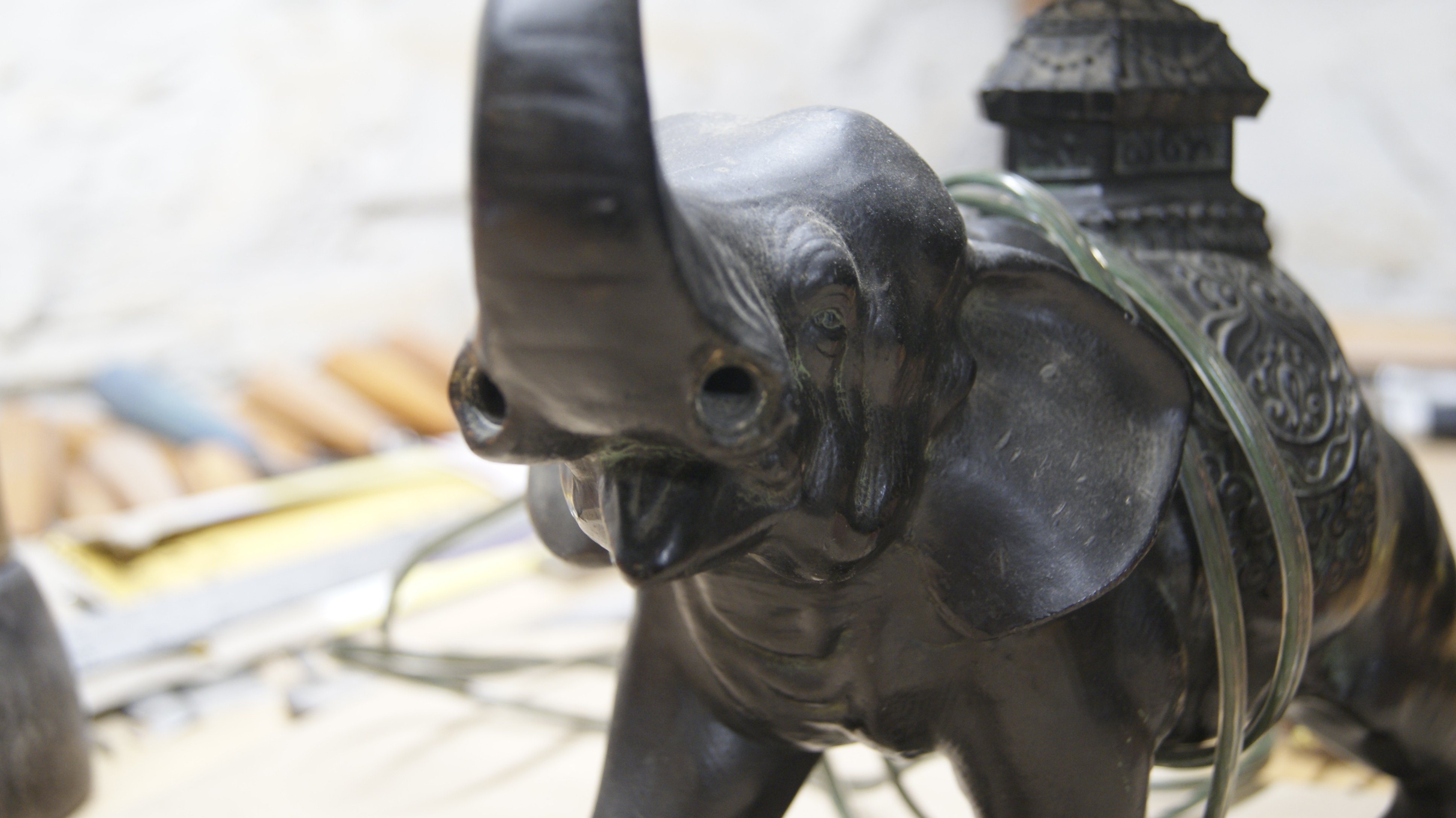 The owner of this beautiful bronze lamp requested our services for its rehabilitation. Indeed, the tusks of the elephant were missing. We discussed about several aspecst of the rehabilitation: type of material / reversibility / maintenance / esthetic aspect / price. We decided to fabricate new, removable tusks in maple.